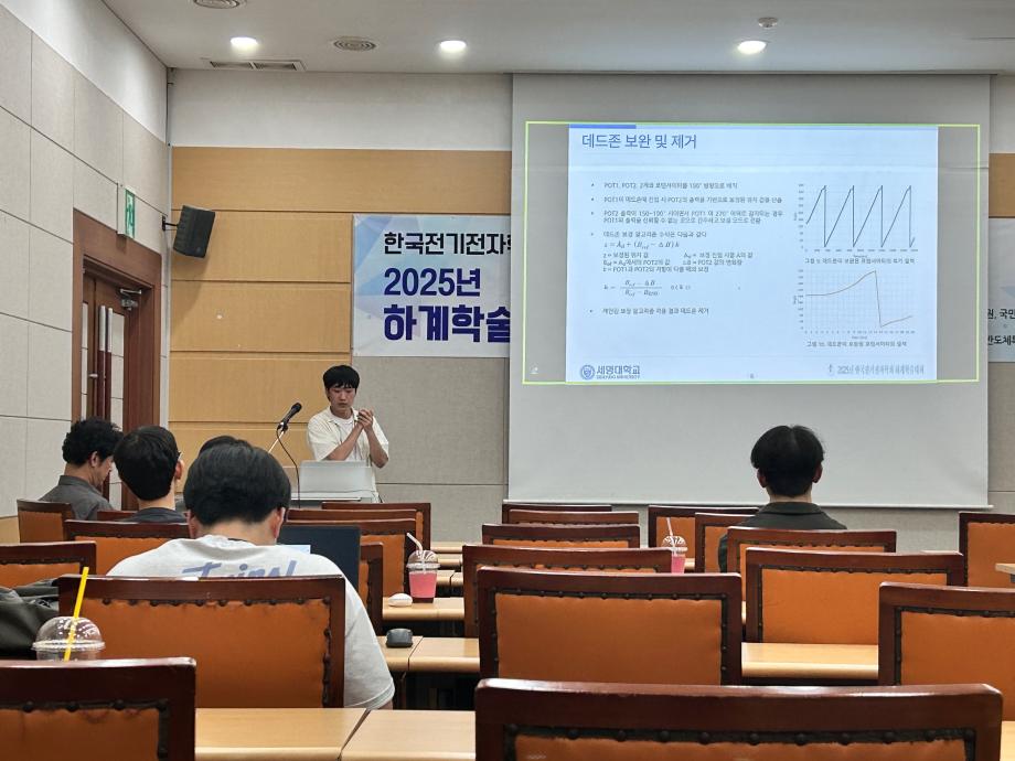 본문 시작 홈으로 커뮤니티 학과소개 교수소개 교육과정 커뮤니티 입학 정보 홈페이지가이드 포토갤러리 학과공지 취업/실습정보 포토갤러리 포토갤러리 페이스북 트위터 프린트 한국전기전자학회_하계학술대회 참여 전기전자공학과 987 2025-08-14 8월 12일부터 14일까지 제주대학교에서 열린 한국전기전자학회 하계학술대회에 전기공학과 학생들이 참여하였다. 학생들은 학부생 특별세션인 논문 경진대회에 참가하여 동상 1개, 장려상 2개를 수상하는 성과를 거두었다. 목록 이전전기전자공학과_여름학기 공동교육 진행 다음 진로직업캠프 진행 만족도조사 만족도 조사 이 페이지에서 제공하는 정보에 대하여 만족하시나요? 매우만족 만족 보통 불만족 매우불만족