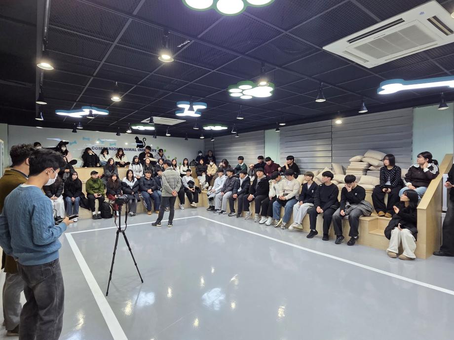본문 시작 홈으로 커뮤니티 학과소개 교수소개 교육과정 커뮤니티 SNS 홈페이지가이드 학과행사 공지사항 포토갤러리 동아리 학과행사 전공관련정보 학과행사 페이스북 트위터 프린트 2026학년도 반려동물산업학과 신입생 환영회 반려동물산업학과 59 2026-03-12 반려동물산업학과에서는 2026년 3월 9일 신입생 환영회를 진행하였습니다. 목록 이전2026학년도 반려동물산업학과 꿈 설계학기 만족도조사 만족도 조사 이 페이지에서 제공하는 정보에 대하여 만족하시나요? 매우만족 만족 보통 불만족 매우불만족