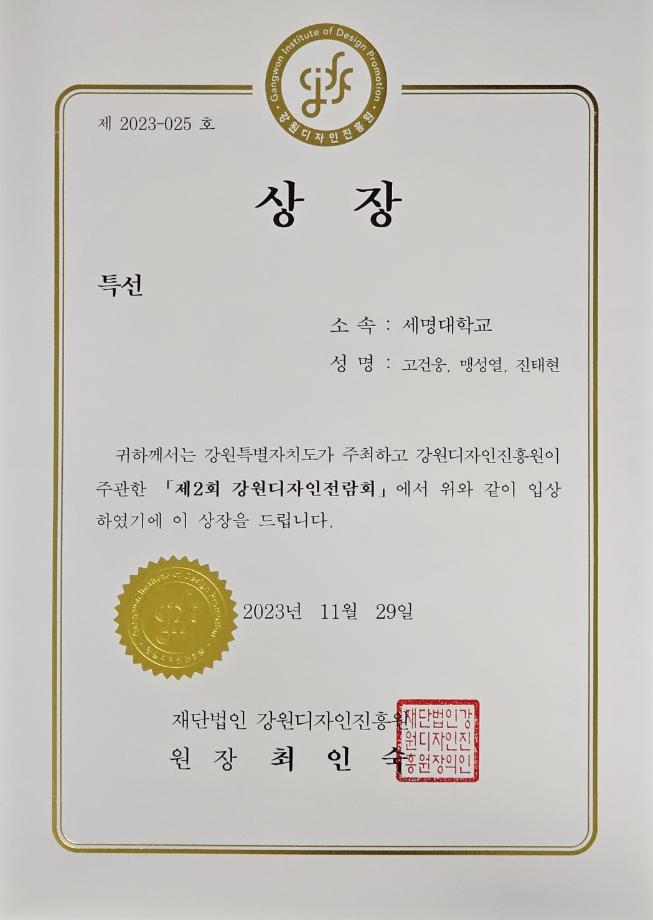 제2회 강원디자인전람회- 은상(문성빈학생), 특선(고건웅학생 외 2인) 수상!