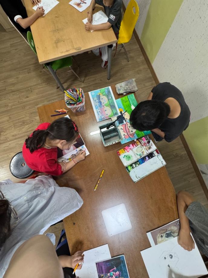 어린이 미술학원에서 현장실습을 하며 아이들과 함께 그림을 그리고 수업을