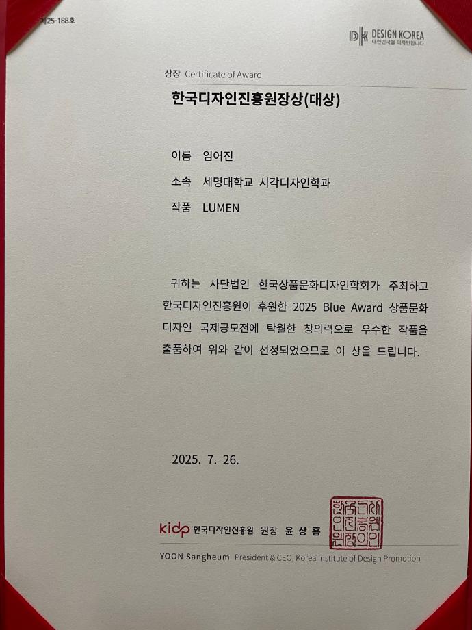 본문 시작 홈으로 학과자랑 학과소개 학과과정 시영소식 입학/취업 AI 학과자랑 SNS소통 홈페이지가이드 학과자랑 학과자랑 갤러리 공모전 동아리 졸업전시회 학과자랑 페이스북 트위터 프린트 2025 블루어워드 국제공모전 - 대상 수상 (임*진 학생) 시각영상디자인학과 871 2025-09-04 대상 수상 축하합니다~ 목록 이전2025학년도 후기(순수외국인) 경희대학교 일반대학원 박사과정 합격 - 이* 학생 다음 2025 자기설계 해외배낭연수 - 시각영상디자인학과 3명(합격) 참여 담당부서 : 시각영상디자인학과 담당자 : - 연락처 : 043-649-1726 최종수정일 : 2024-10-26 만족도조사 만족도 조사 이 페이지에서 제공하는 정보에 대하여 만족하시나요? 매우만족 만족 보통 불만족 매우불만족