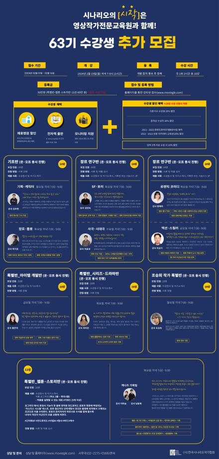 시나리오작가 지망생을 위한 [영상작가전문교육원] 63기 수강생 추가모집