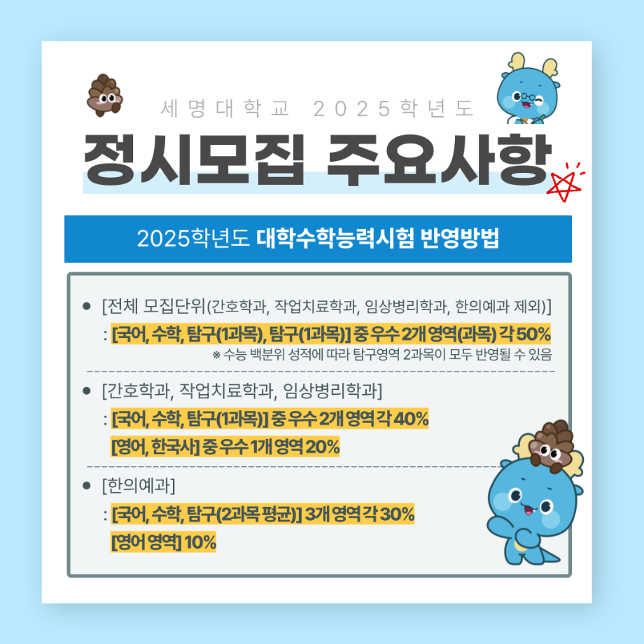 2025학년도 대학수학능력시험 반영 방법입니다.