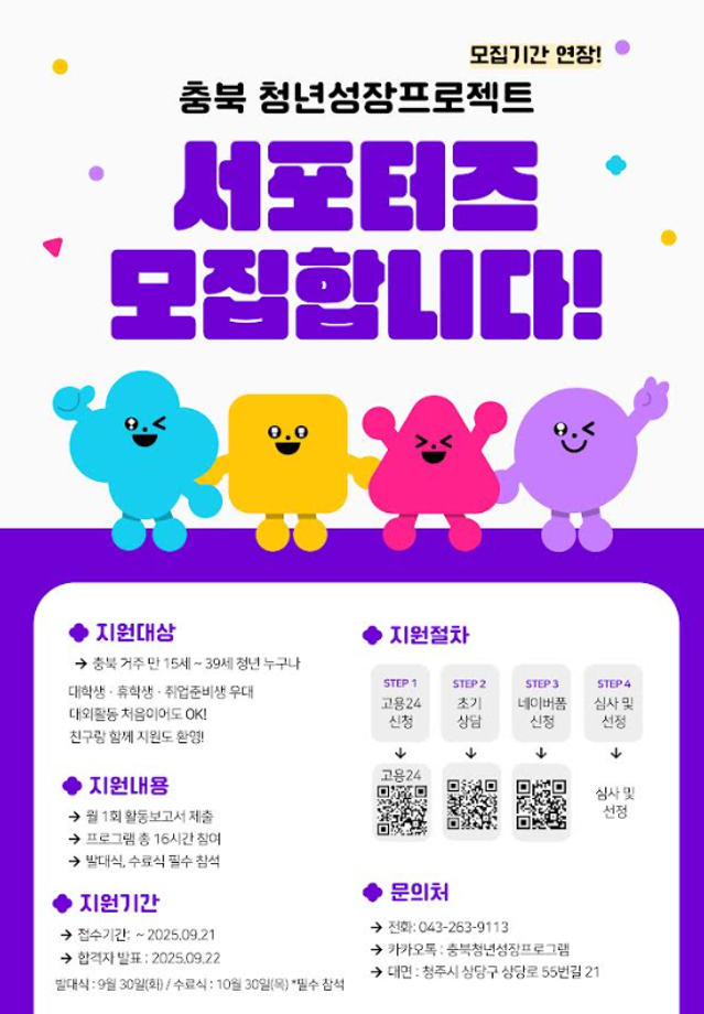 본문 시작 홈으로 MCC News 학과소개 교수소개 학과과정 MCC News MCC SNS 홈페이지가이드 미디어 정보통 학과 및 재학생 교수 및 졸업생 미디어 정보통 미디어 정보통 페이스북 트위터 프린트 충북 청년성장프로젝트 안내 미디어콘텐츠창작학과 1111 2025-09-16 충북 청년성장프로젝트 안내해드립니다. 목록 이전2025학년도 2학기 원어민 교수와의 대화 이전「2025년 농업·농촌 영상·사진 공모전」 담당부서 : 미디어콘텐츠창작학과 담당자 : - 연락처 : 043-649-1741 최종수정일 : 2024-10-26 만족도조사 만족도 조사 이 페이지에서 제공하는 정보에 대하여 만족하시나요? 매우만족 만족 보통 불만족 매우불만족