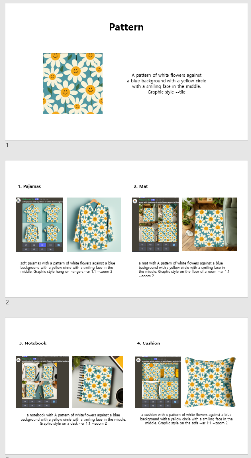 본문 시작 홈으로 AI 학과소개 학과과정 시영소식 입학/취업 AI 학과자랑 SNS소통 홈페이지가이드 AI 콘텐츠 연구소(AI 디자인) 디자인 정보 AI 콘텐츠 연구소(AI 디자인) AI 콘텐츠 연구소(AI 디자인) 페이스북 트위터 프린트 2024년 1학기 모듈 생성 AI 일러스트레이션 - 패턴, 굿즈 시각영상디자인학과 1348 2024-09-08 타일 기능을 활용하여 사방연속 패턴 제작 후, 이를 Zoom 기능/ Remix 기능을 활용하여 굿즈 제작 평소의 1/10 속도로 제작가능하였습니다. 허유빈, 이정동 신유빈 홍주영 목록 이전2024년 1학기 모듈 생성AI일러스트레이션 수업 - 포스터 다음 2023년도 AI 수업 우수 결과물 만족도조사 만족도 조사 이 페이지에서 제공하는 정보에 대하여 만족하시나요? 매우만족 만족 보통 불만족 매우불만족