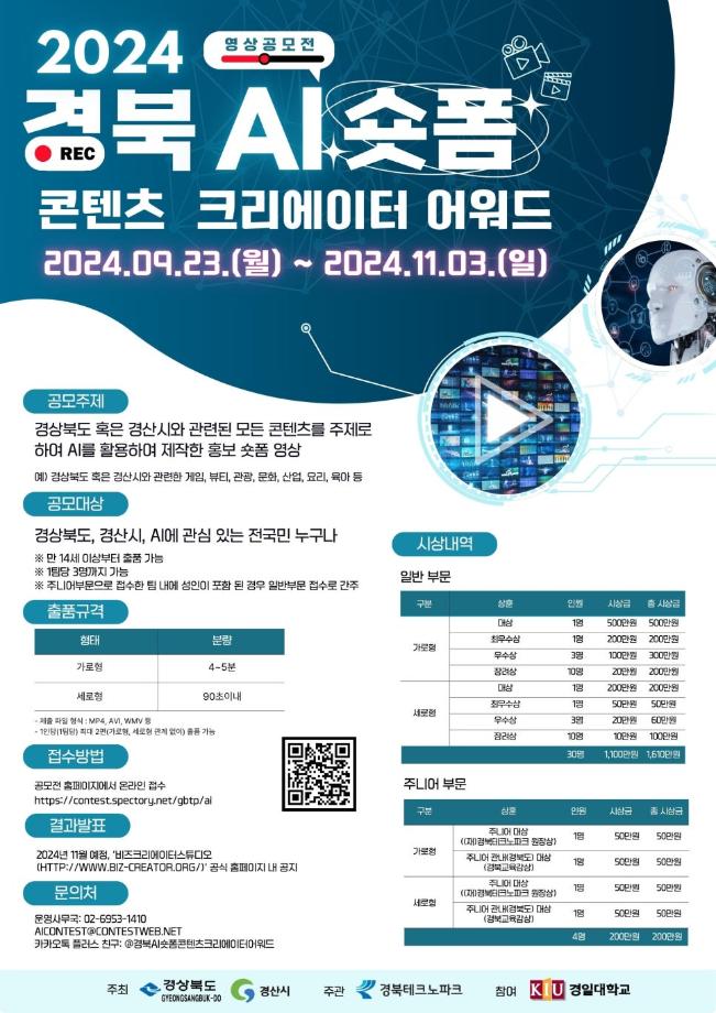 본문 시작 홈으로 AI 학과소개 학과과정 시영소식 입학/취업 AI 학과자랑 SNS소통 홈페이지가이드 AI 콘텐츠 연구소(AI 디자인) 디자인 정보 AI 콘텐츠 연구소(AI 디자인) AI 콘텐츠 연구소(AI 디자인) 페이스북 트위터 프린트 세명 AI 콘텐츠 연구소 - 2024 경북 AI 숏폼 콘텐츠 크리에이터 어워드 시각영상디자인학과 860 2025-03-17 2024 경북 AI 숏폼 콘텐츠 크리에이터 어워드에서 연구원 1명이 본선에 진출하였습니다. 목록 이전세명 AI 콘텐츠 연구소 - 2024 대전디자인 공모전 수상 다음 세명 AI 콘텐츠 연구소 - 성과발표회 참여 만족도조사 만족도 조사 이 페이지에서 제공하는 정보에 대하여 만족하시나요? 매우만족 만족 보통 불만족 매우불만족