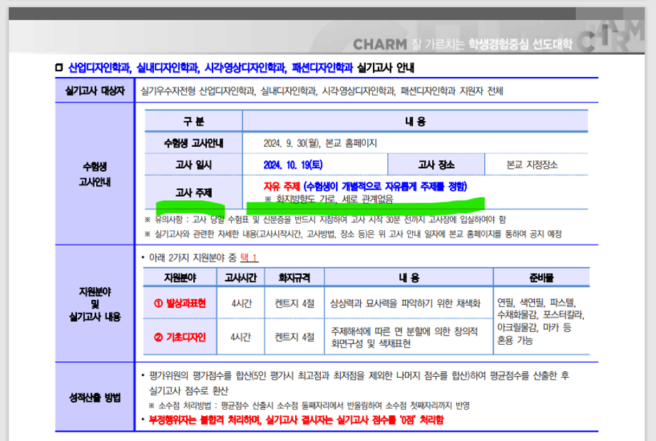 세명대학교_2025학년도 수시 실기 시각영상디자인학과 -> '자유주제' 이며,