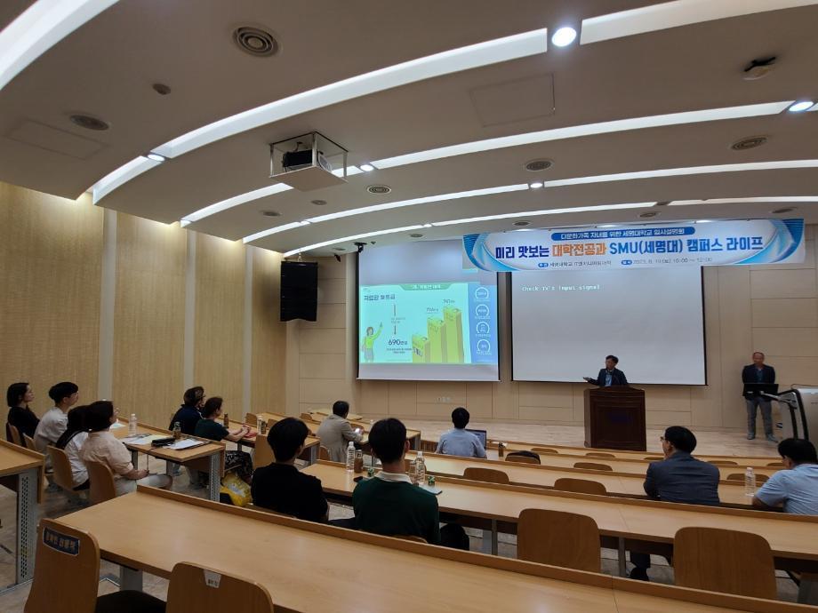 세명대학교 IT엔지니어링대학과 제천시가족센터는 다문화가족 자녀들을 위해 “미리 맛보는 대학전공과 SMU(세명대 학교) 캠퍼스 라이프”란 주제로 2024학년도 입시 관련 설명회를 개최하였다. 세명대학교 장학제도, 학부과(전기전자공 학과, 재난안전학과, 컴퓨터학부, 스마트IT학부, 건축학과) 교육과정 및 취업 현황 등을 소개하고 도서관 및 기숙사를 둘 러보는 시간을 가졌다. 세명대학교 IT엔지니어링대학는 앞으로도 지역 학생들의 진로를 위해 다양한 프로그램을 지속적 으로 운영할 것이다.