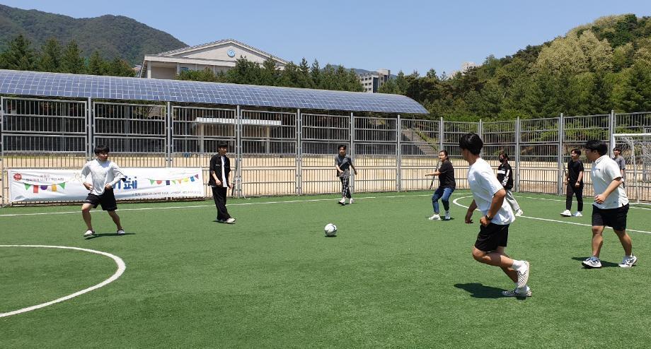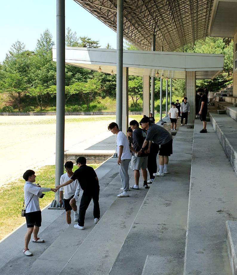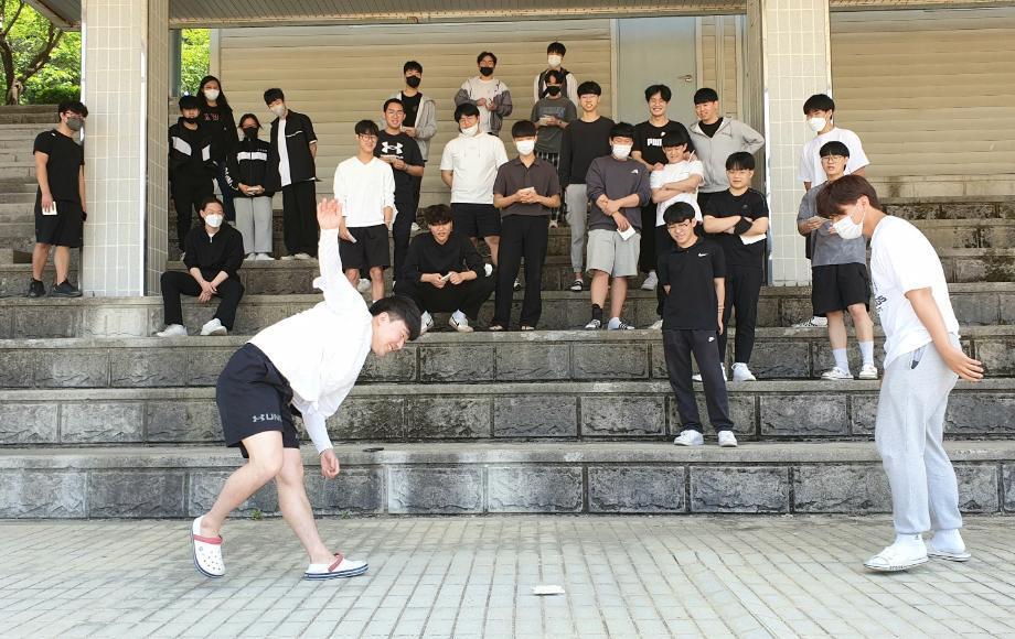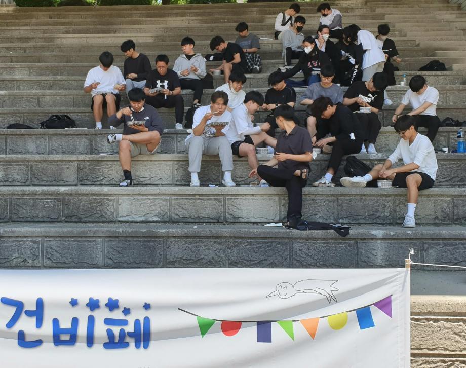 코로나 상황으로 인해 침체된 22학번 1학년 신입생들의 학교생활에 활기와 친목도모를 위해 ‘건축 비기너 페스티발_건 비페’ 행사가 열렸다. 5월 24일 10시부터 1학년 학생들과 건축형태구성 야외실습과 더불어 진행된 페스티벌 오전 시간 에는 ‘오징어 게임’에서 보았던 개별게임인 ‘딱지치기’와 ‘무궁화 꽃이 피었습니다’로 서로 간의 이해와 우의를 다지고 배 달 도시락으로 즐거운 점심시간을 가졌다. 오후에는 피구게임이 4팀으로 나뉘어 실력을 겨룬 후, 전체 교수님과 단체사 진을 찍고 마무리 되었다. 이번 기회를 계기로 다양한 캠퍼스 문화를 더 자주 맛보게 되기를 바란다.