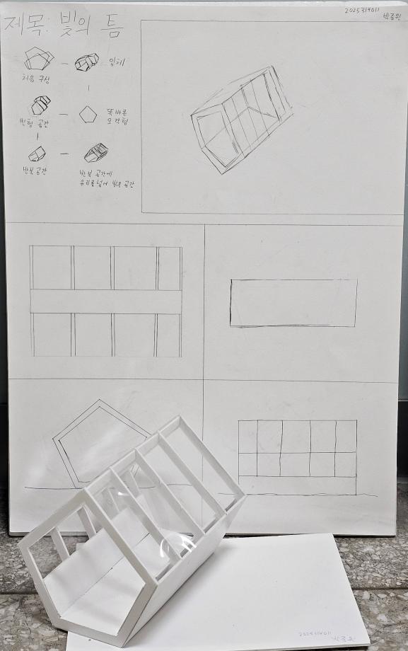 본문 시작 홈으로 커뮤니티 학과소개 교수소개 교육과정 학과 행사 및 활동 커뮤니티 홈페이지가이드 열린정보 학과일정 학과공지 채용정보 및 자료 열린정보 포토갤러리 먹거리, 즐길거리 포토갤러리 사진 사진 영상 사진 페이스북 트위터 프린트 사진 영상 1학년 중간 설계과제 건축학과 668 2025-10-30 1학년은 ‘건축공간구성’에서 스케치와 모형을 통해 공간을 탐구했습니다. 처음 도전한 판넬과 모델링이었지만, 각자의 아이디어와 독창성이 빛나는 작품들이 완성되었습니다 ✨ 건축가로 성장해갈 이들의 다음 걸음이 더욱 기대됩니다! 👣😊 목록 이전2학년 중간 설계과제 다음 세명대학교 홍보 포스터 만족도조사 만족도 조사 이 페이지에서 제공하는 정보에 대하여 만족하시나요? 매우만족 만족 보통 불만족 매우불만족