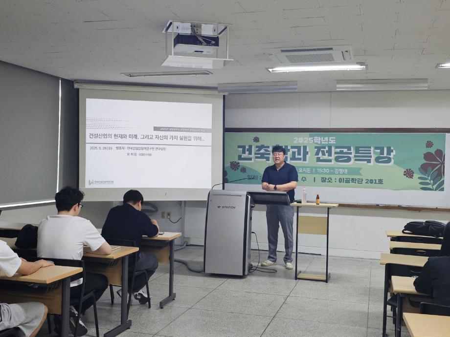 본문 시작 홈으로 학과 행사 및 활동 학과소개 교수소개 교육과정 학과 행사 및 활동 커뮤니티 홈페이지가이드 학과 행사 학과 행사 학과 대외 활동 학생회 및 동아리 학과대내 활동 입학식, 학위수여식 졸업작품전 학과대내 활동 학과대내 활동 페이스북 트위터 프린트 2025학년도 건축학과 전공특강 건축학과 702 2025-05-29 2025학년도 건축학과 전공특강 2025년 5월 28일 수 13:30 / 15:30 한국건설인정책연구원 - 오치돈 재재건축사사무소 -김정태 목록 이전2024학년도 건축학과 전공특강 만족도조사 만족도 조사 이 페이지에서 제공하는 정보에 대하여 만족하시나요? 매우만족 만족 보통 불만족 매우불만족