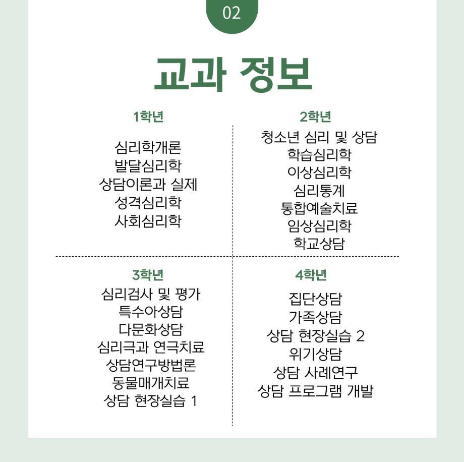 본문 시작 홈으로 학과 커뮤니티 학부소개 교수소개 교육목표 입학안내 학과 커뮤니티 대학원 커뮤니티 홈페이지가이드 학과 갤러리 학과소식 학사일정 학과 갤러리 학과 갤러리 페이스북 트위터 프린트 상담심리학과 교과과정 & 전공 정보 상담심리학과 1909 2024-07-25 목록 이전상담심리학과 학과 소개 다음 상담심리학과 입시모집요강 및 인재상 만족도조사 만족도 조사 이 페이지에서 제공하는 정보에 대하여 만족하시나요? 매우만족 만족 보통 불만족 매우불만족