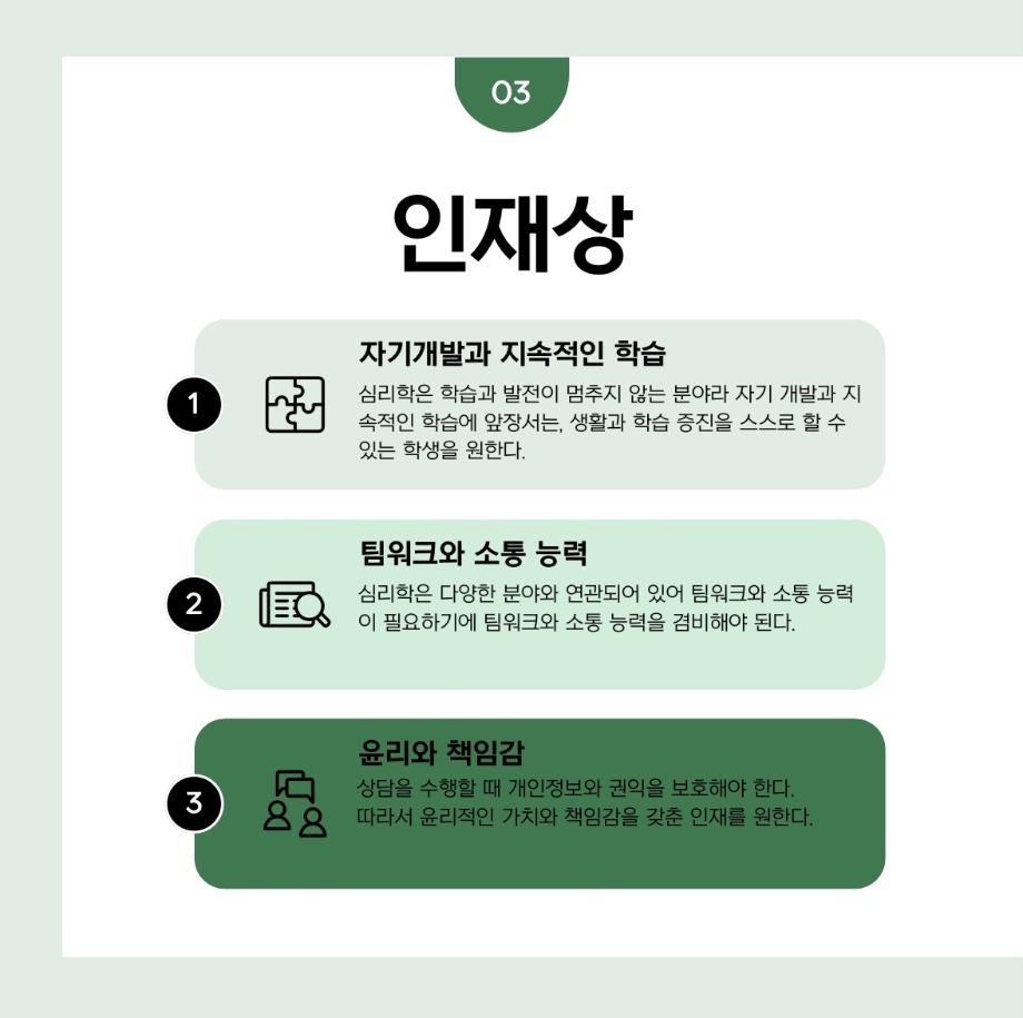본문 시작 홈으로 학과 커뮤니티 학부소개 교수소개 교육목표 입학안내 학과 커뮤니티 대학원 커뮤니티 홈페이지가이드 학과 갤러리 학과소식 학사일정 학과 갤러리 학과 갤러리 페이스북 트위터 프린트 상담심리학과 입시모집요강 및 인재상 상담심리학과 1676 2024-08-29 목록 이전상담심리학과 교과과정 & 전공 정보 다음 [비교과 프로그램] 상담심리학과 산학협력 사제동행 프로그램 만족도조사 만족도 조사 이 페이지에서 제공하는 정보에 대하여 만족하시나요? 매우만족 만족 보통 불만족 매우불만족
