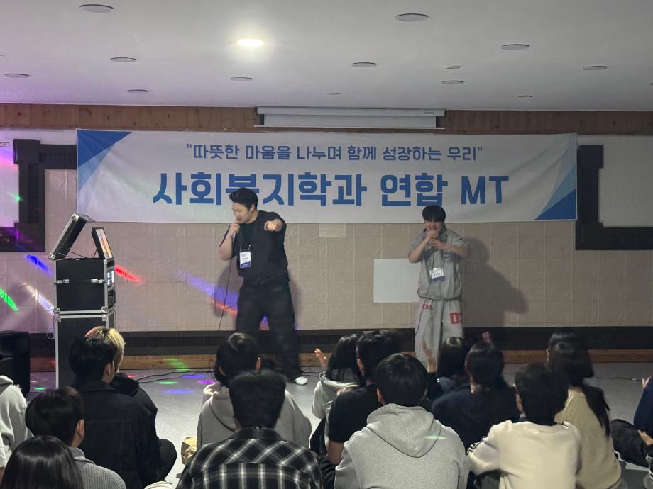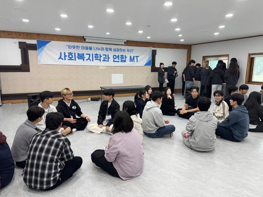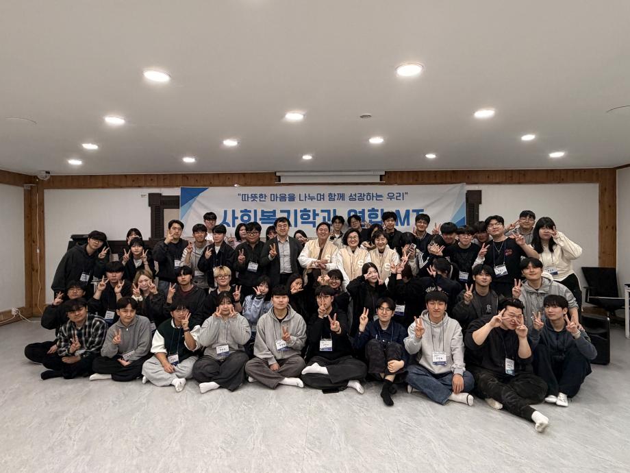본문 시작 홈으로 커뮤니티 학과소개 교수소개 교육과정 현장실습 및 취업정보 커뮤니티 홈페이지가이드 포토갤러리 학과공지 학사일정 학생회 동아리 학생 소통 광장 포토갤러리 전공자료실 서식자료실 포토갤러리 페이스북 트위터 프린트 [사회복지학과] 2026학년도 연합 MT 사회복지학과 19 2026-04-07 지난 4/2~4/3 사회복지학과 연합 MT를 원주 힐링파크로 다녀왔습니다. 목록 이전[사회복지학과] 2026학년도 신입생 환영회 만족도조사 만족도 조사 이 페이지에서 제공하는 정보에 대하여 만족하시나요? 매우만족 만족 보통 불만족 매우불만족