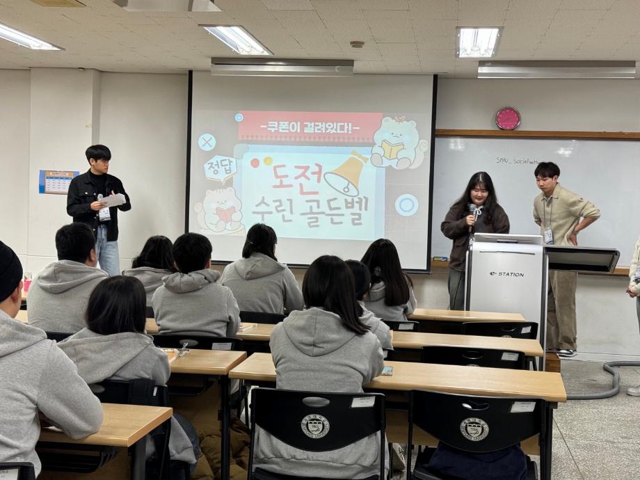 본문 시작 홈으로 커뮤니티 학과소개 교수소개 교육과정 현장실습 및 취업정보 커뮤니티 홈페이지가이드 포토갤러리 학과공지 학사일정 학생회 동아리 학생 소통 광장 포토갤러리 전공자료실 서식자료실 포토갤러리 페이스북 트위터 프린트 [사회복지학과] 2024학년도 꿈설계학기 진행 사회복지학과 2025 2024-02-21 지난 2월 19일~21일 2박 3일동안 24학번 학우들과 신입생 OT 꿈 설계학기 '24 가보자고'를 진행하였습니다. 참여해주신 신입생 여러분들께 즐거운 추억이 됐길 바랍니다. 입학을 축하드립니다:) 목록 다음 [사회복지학과] 2024학년도 개강총회&신입생환영회 진행 다음 [사회복지학과] 연합 MT 진행 만족도조사 만족도 조사 이 페이지에서 제공하는 정보에 대하여 만족하시나요? 매우만족 만족 보통 불만족 매우불만족