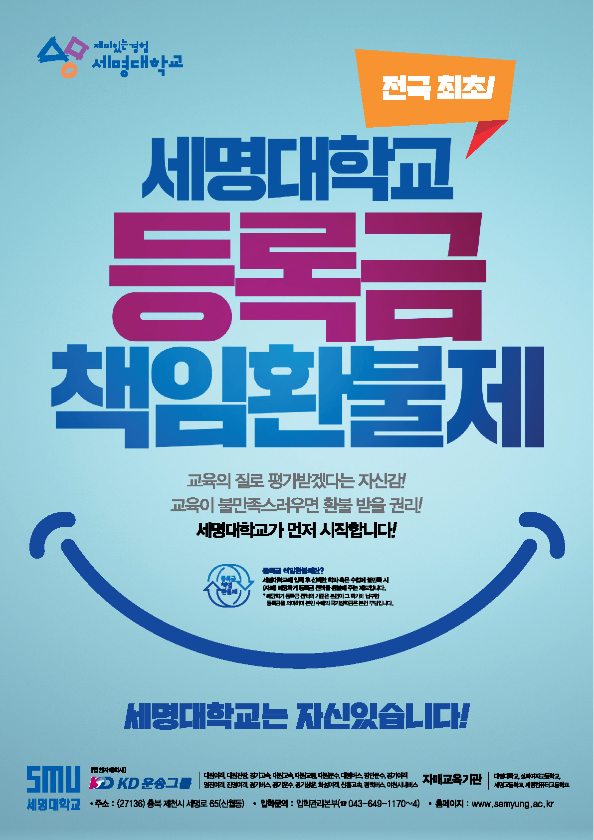 본문 시작 Media SMU 세명소개 입학/취업 대학/대학원 학사지원 대학생활 연구/산학 기관/시설 SMU Story 소통·공감 학교기업 홈페이지가이드 홍보포스터 News@SMU 공지사항 보도자료 Media SMU 민송백일장 해카톤 경진대회 홍보포스터 페이스북 트위터 프린트 2025년 포스터 다운로드 2025년 포스터 다운로드 2024년 포스터 다운로드 2024년 포스터 다운로드 2023년 포스터 다운로드 2023년 포스터 다운로드 담당부서 : 홍보센터 담당자 : 홍보센터 연락처 : 043)649-1175 최종수정일 : 2025-07-03 만족도조사 만족도 조사 이 페이지에서 제공하는 정보에 대하여 만족하시나요? 매우만족 만족 보통 불만족 매우불만족